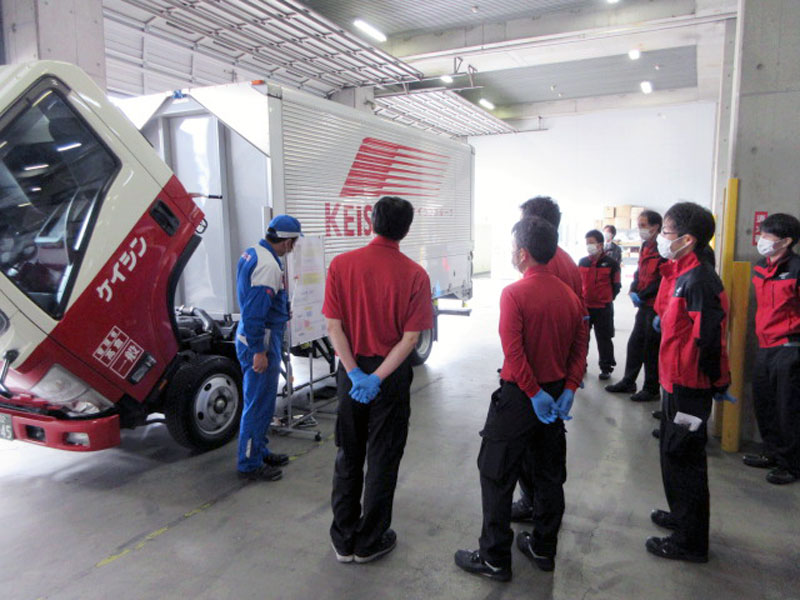入社間もないSPに対し、5Sをはじめとする社会人としてのマナーや安全に運転するための日常点検、運行上における注意点等ドライバーとしての基礎を内部講師によって研修し、従業員同士の親睦を深めると共にひとりひとりのレベルアップを目指します。